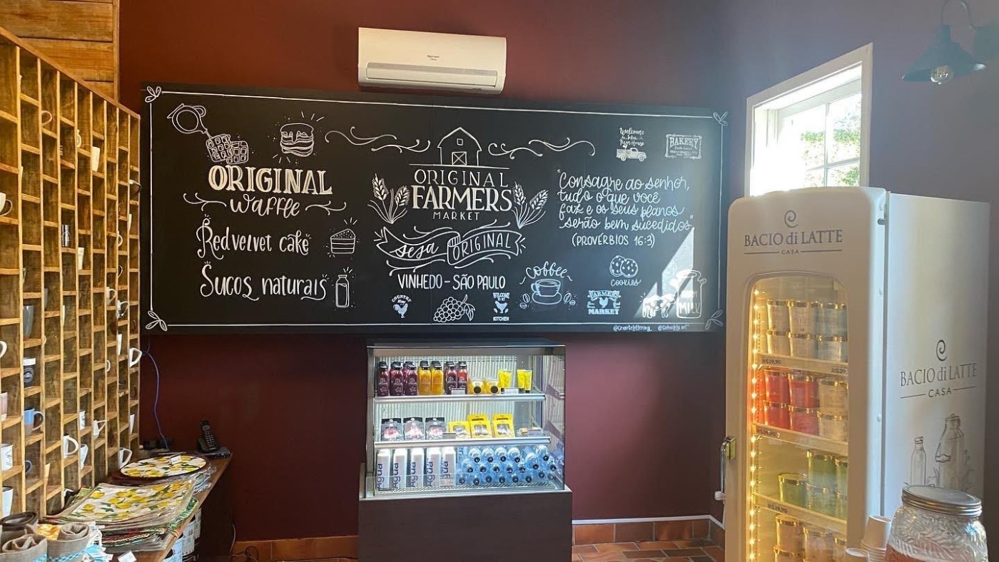 Além do café dentro de um “barn” cenografico que se pode tomar no local com produtos como Wafle, Panqueca com várias coberturas, Biscuit, Bolos, e muito mais, pode-se comprar tudo isso na loja que parece uma “FARM” americana até no cheirinho das lojas de comida dos Estados Unidos.